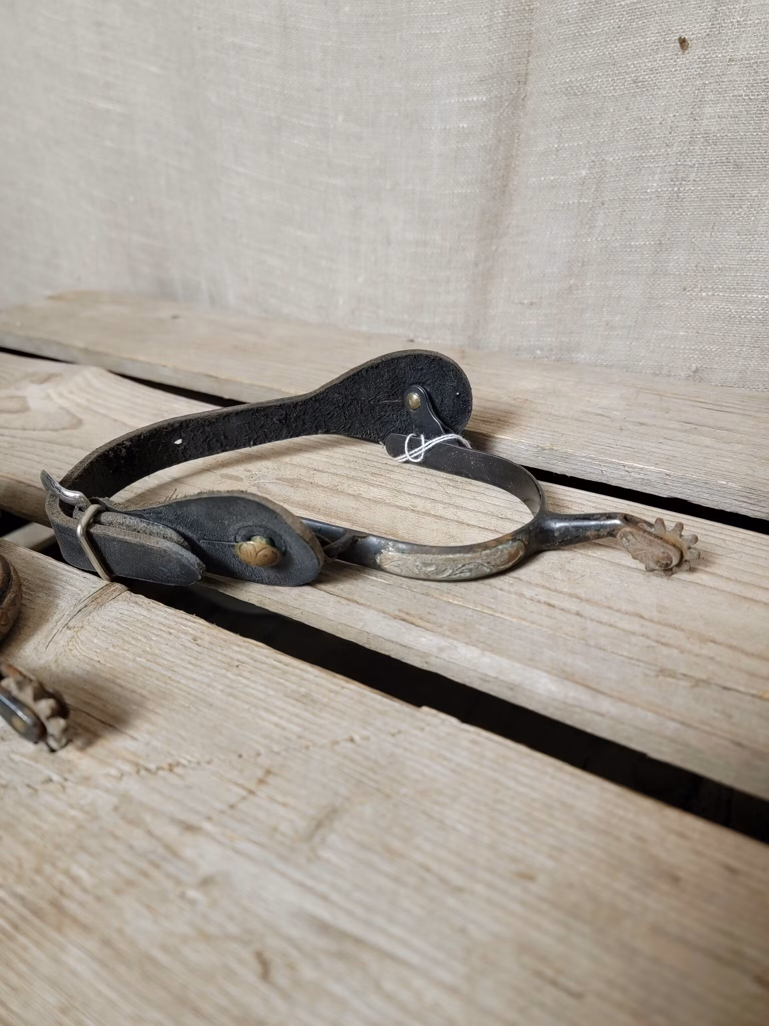 Sporrar med remmar i svart 300 kr I lager. Lägg i korgen Produktbeskrivning Lite rost finns på sporrarna men övrigt ok skick.