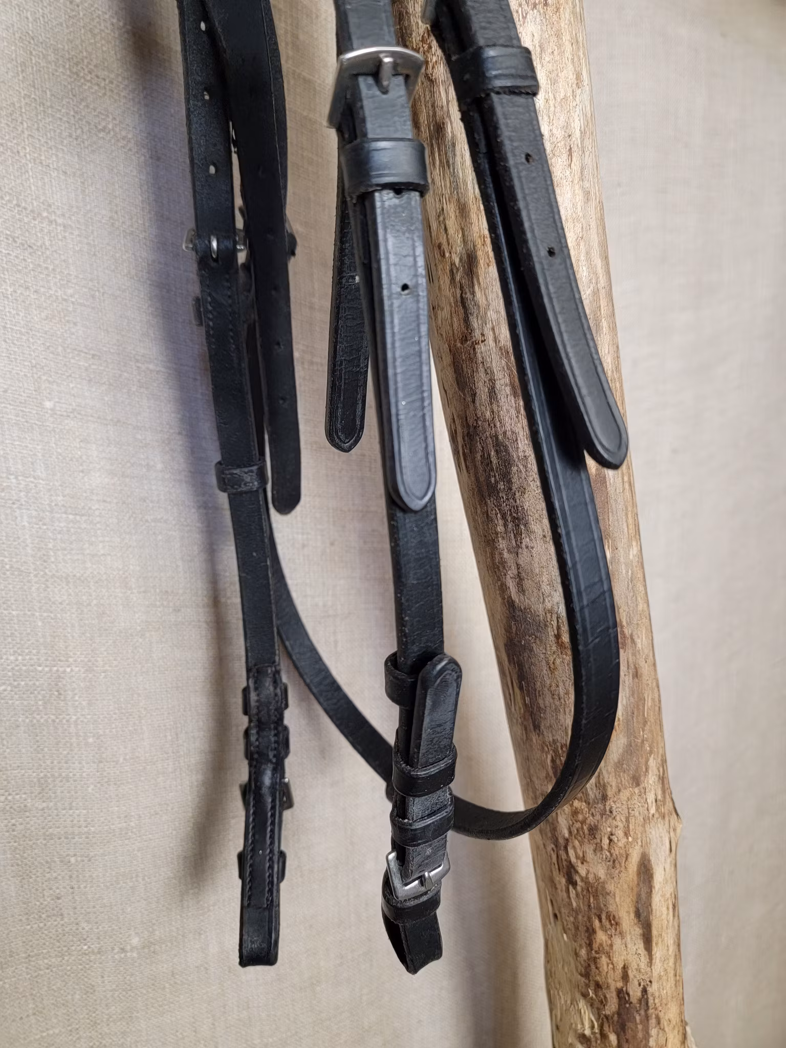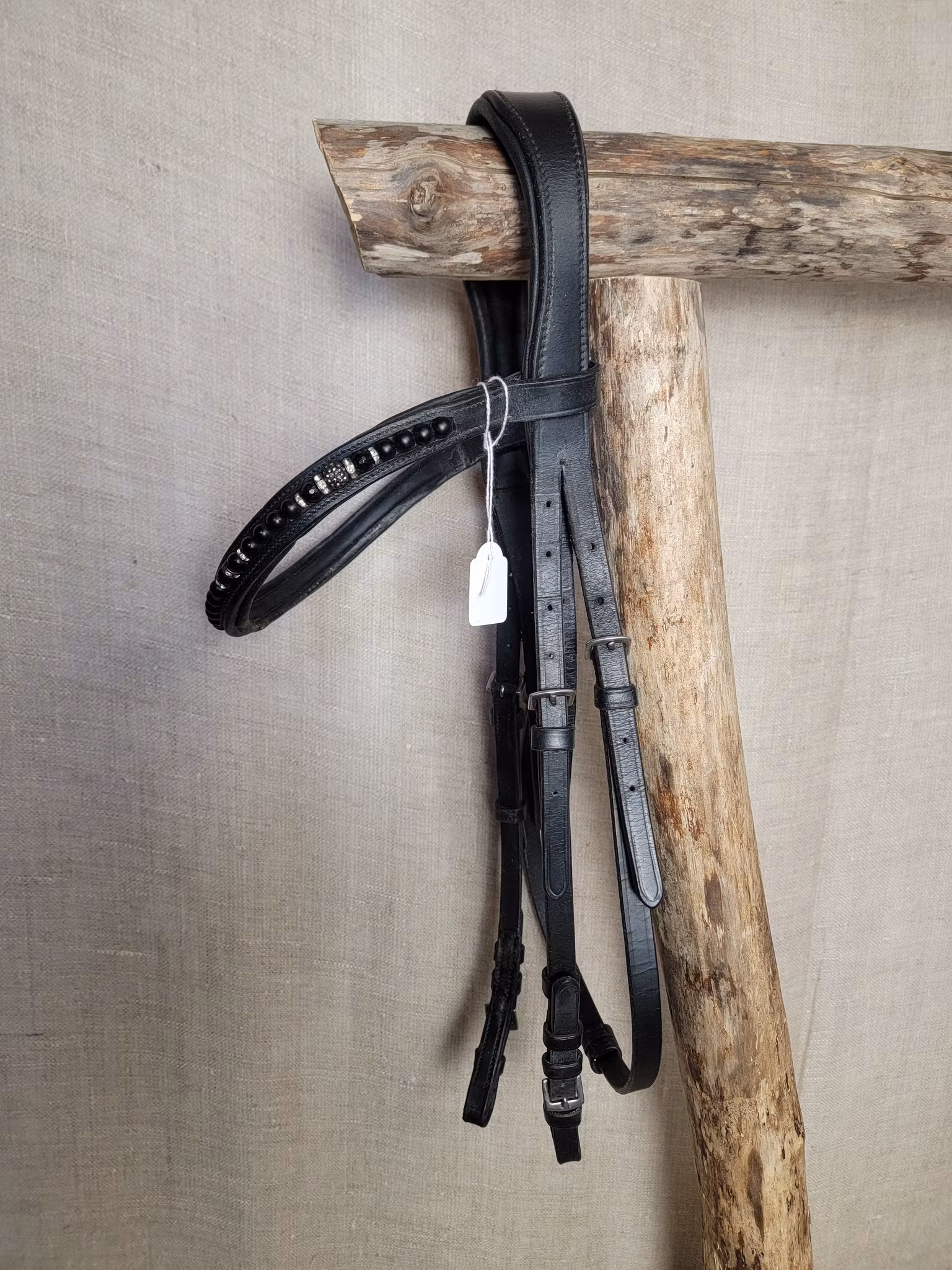 Träns stl full i svart med silverspännen 160 kr I lager. Lägg i korgen Produktbeskrivning Saknar nosdelen men övrigt ok skick.