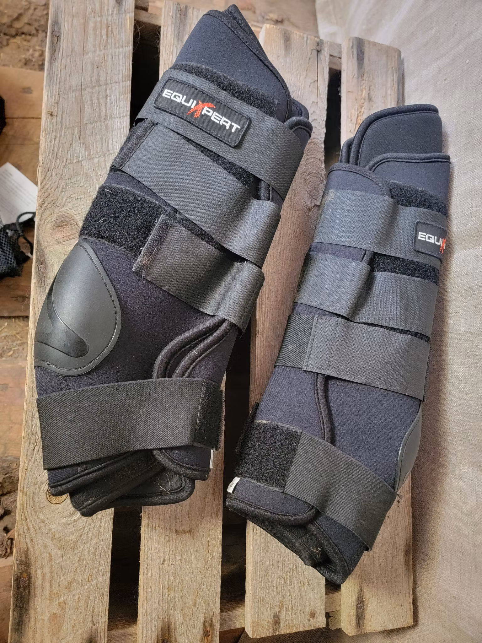 Stallskydd/Transportskydd stl M ( full) 4 st passar både fram och bak 400 kr I lager. Lägg i korgen Produktbeskrivning Ytterst lite smuts finns men övrigt fint skick.