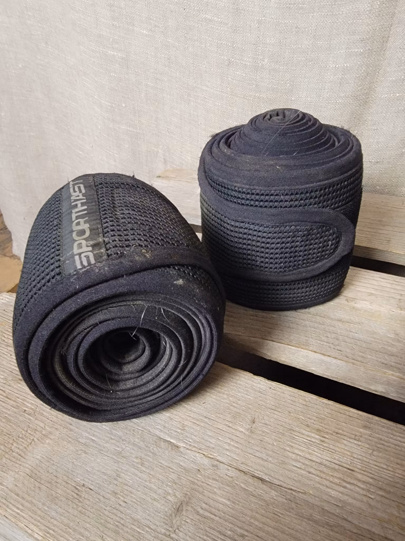Benlindor 2 st med tillhörande paddar från Sporthäst i ventilerande matrial 240 kr I lager. Lägg i korgen Produktbeskrivning Lite smuts finns på lindorna men övrigt fint skick.