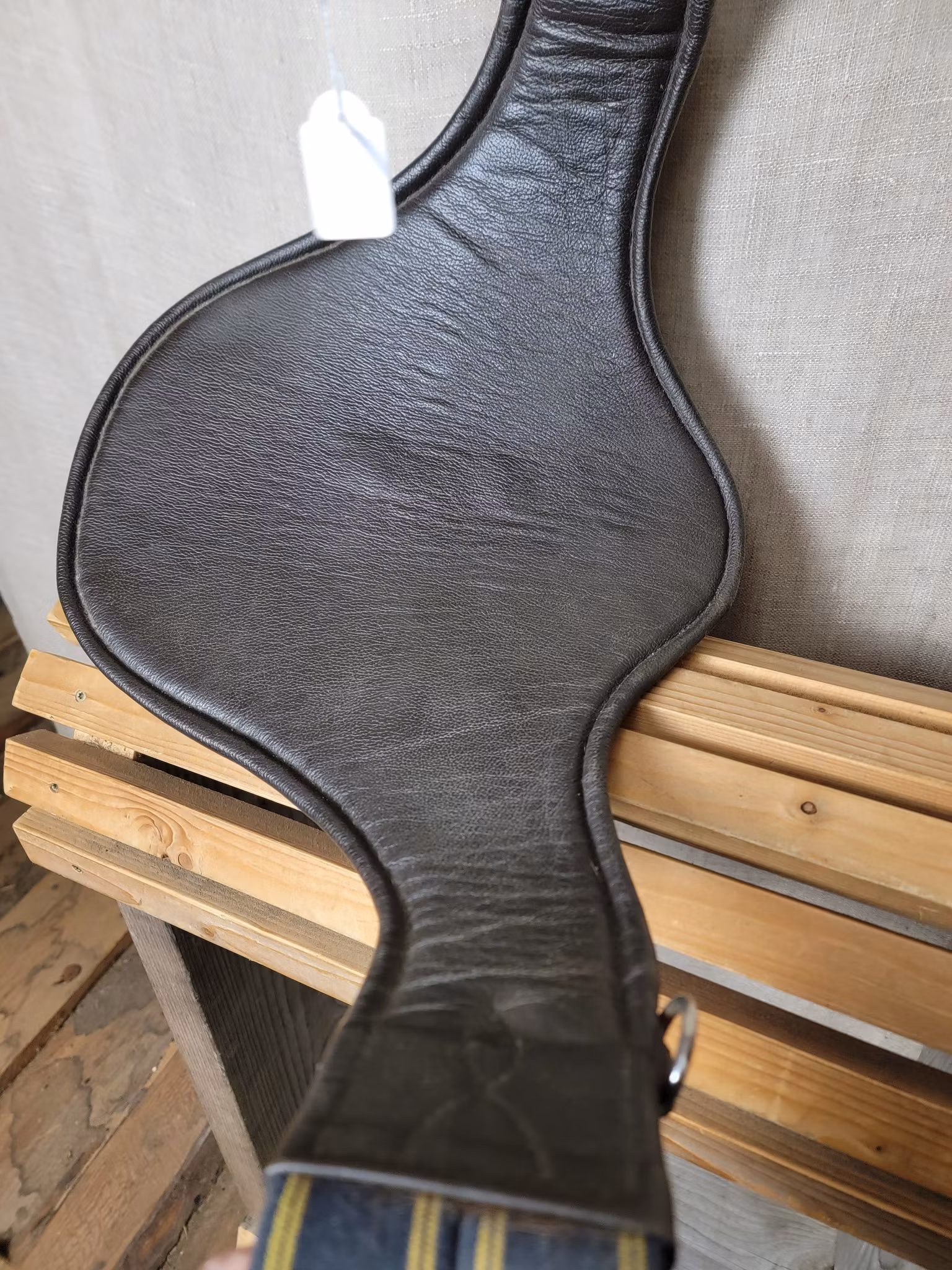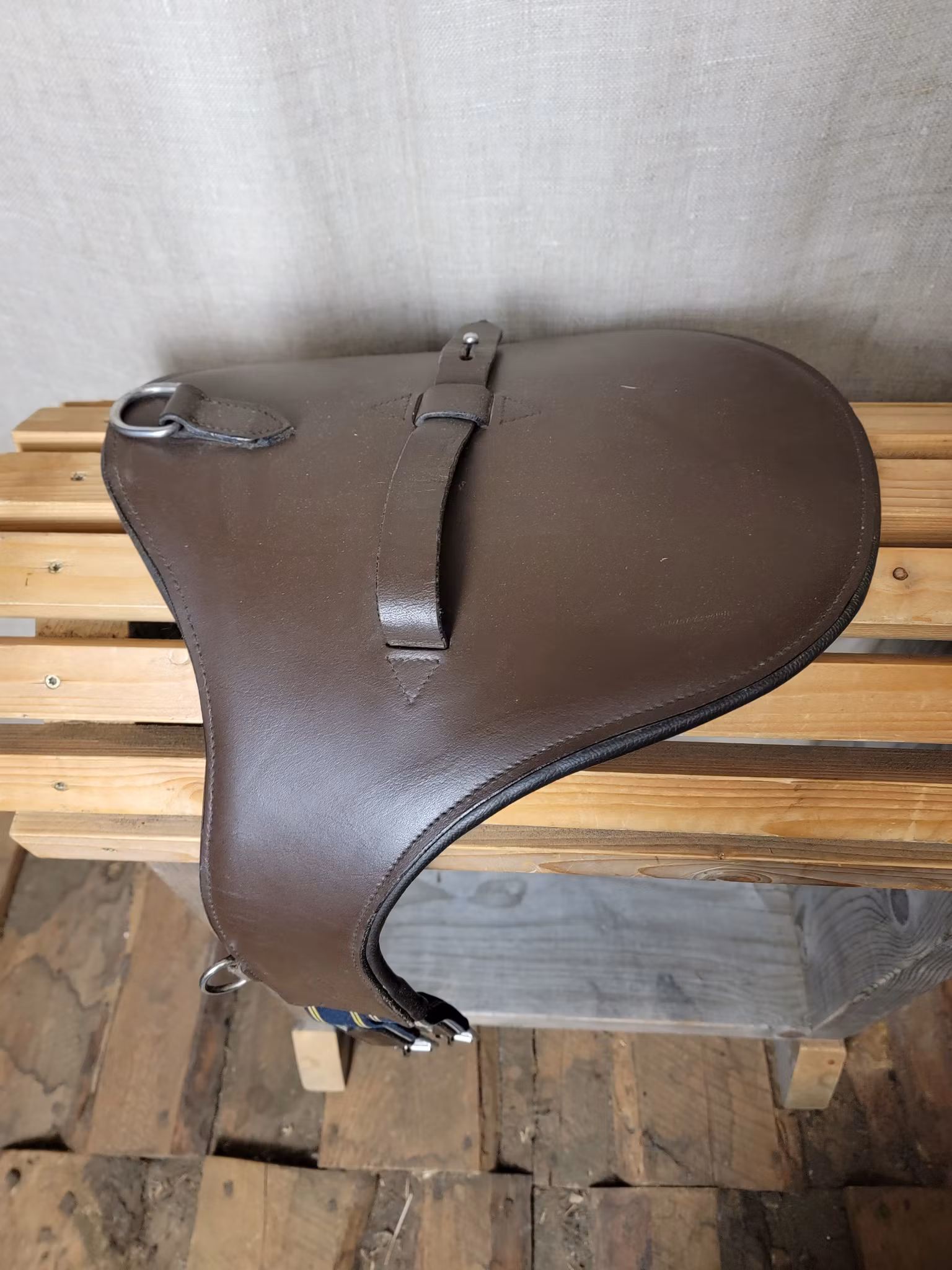 Lädergjord med platta i brunt 110 cm