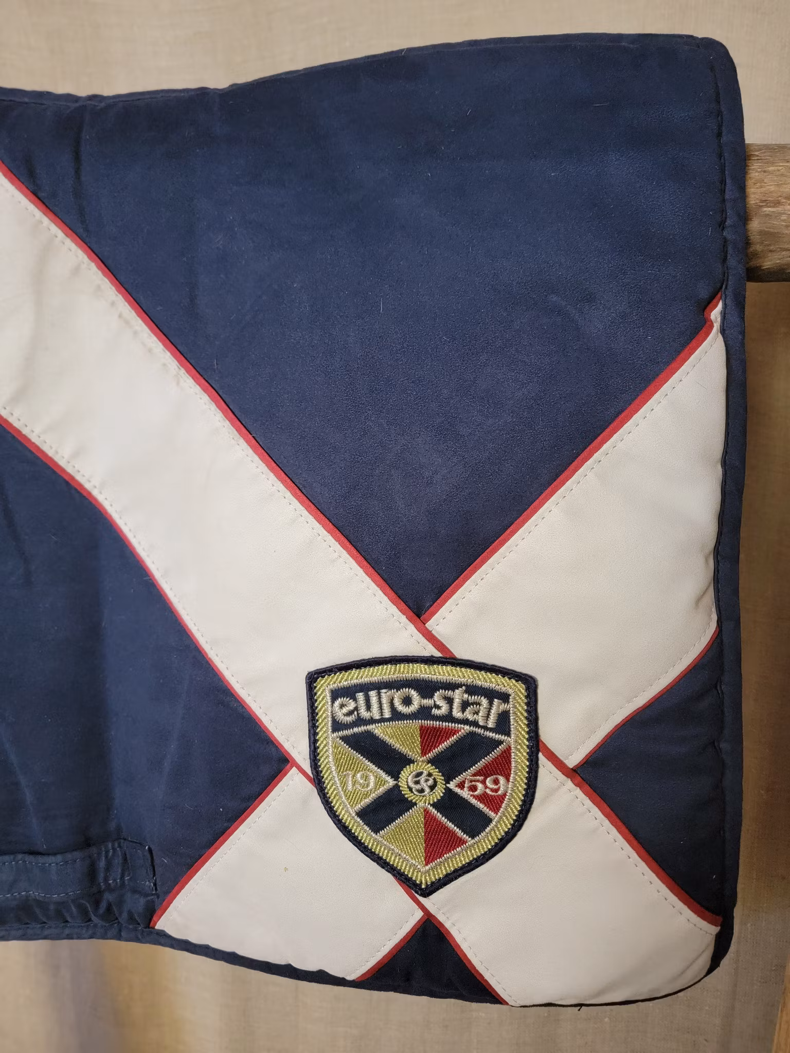 Allroundschabrak stl full från Euro-star i blått, vitt och rött 50 kr I lager. Lägg i korgen Produktbeskrivning Lite fläckar finns under sadelläget och hår på undersidan men annars ok tvättat skick.
