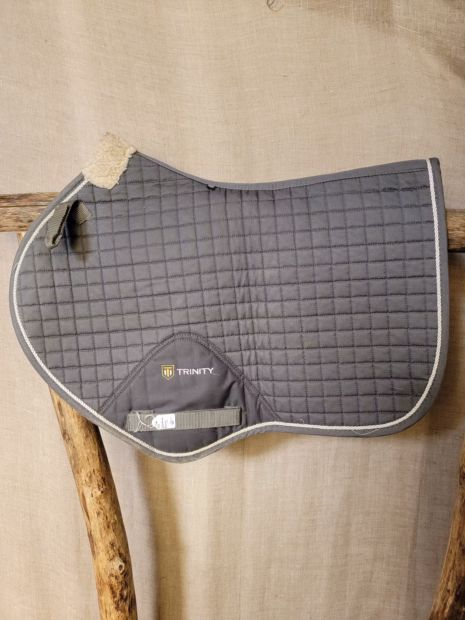 Hoppschabrak stl ponny i grått från Trinity 60 kr I lager. Lägg i korgen Produktbeskrivning Lite slitage vid sadelgjordsfästet och fläckar på undersidan men övrigt ok tvättat skick.