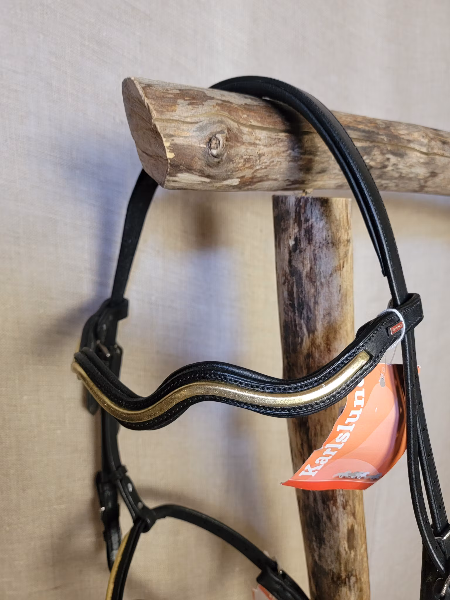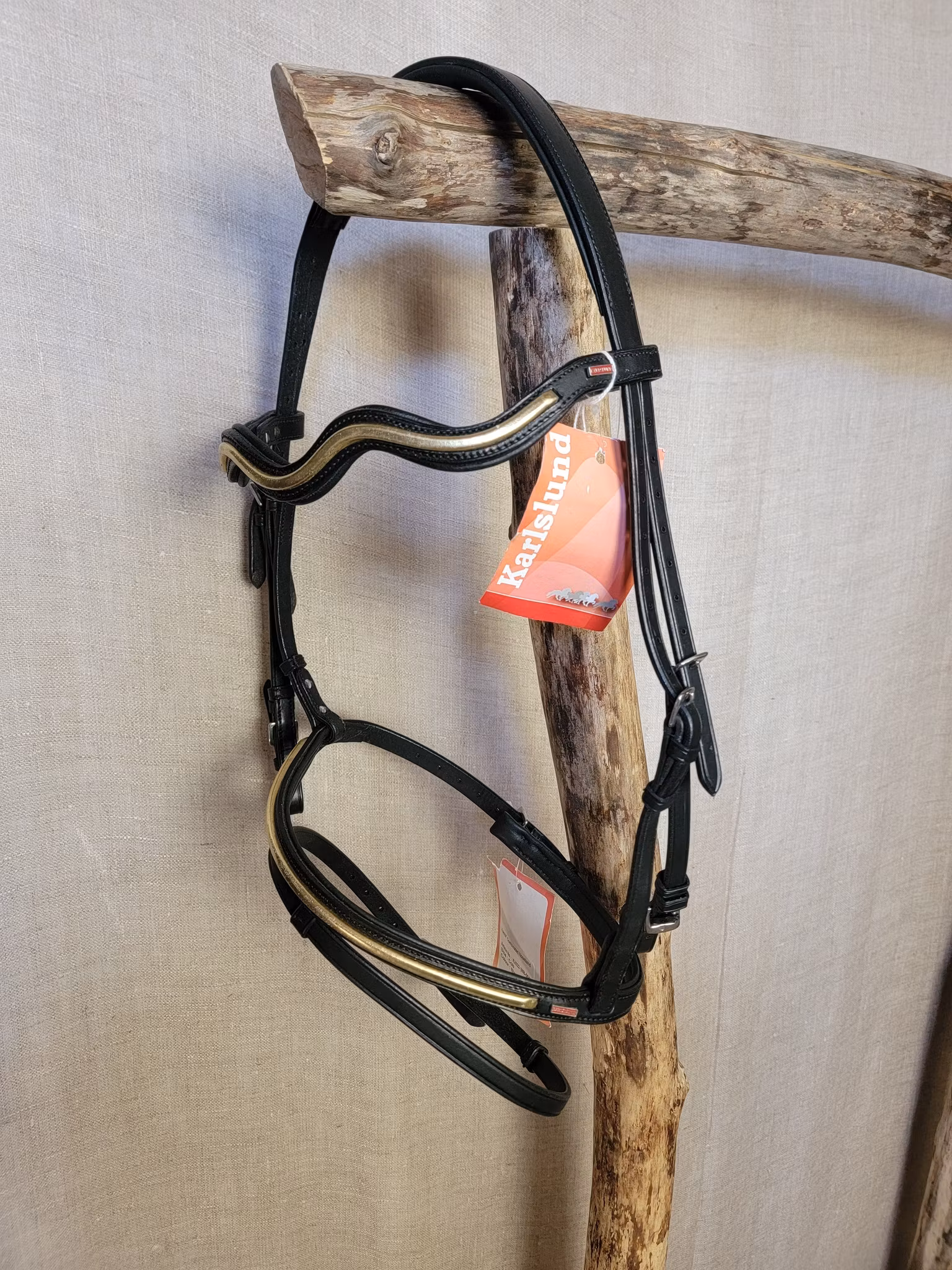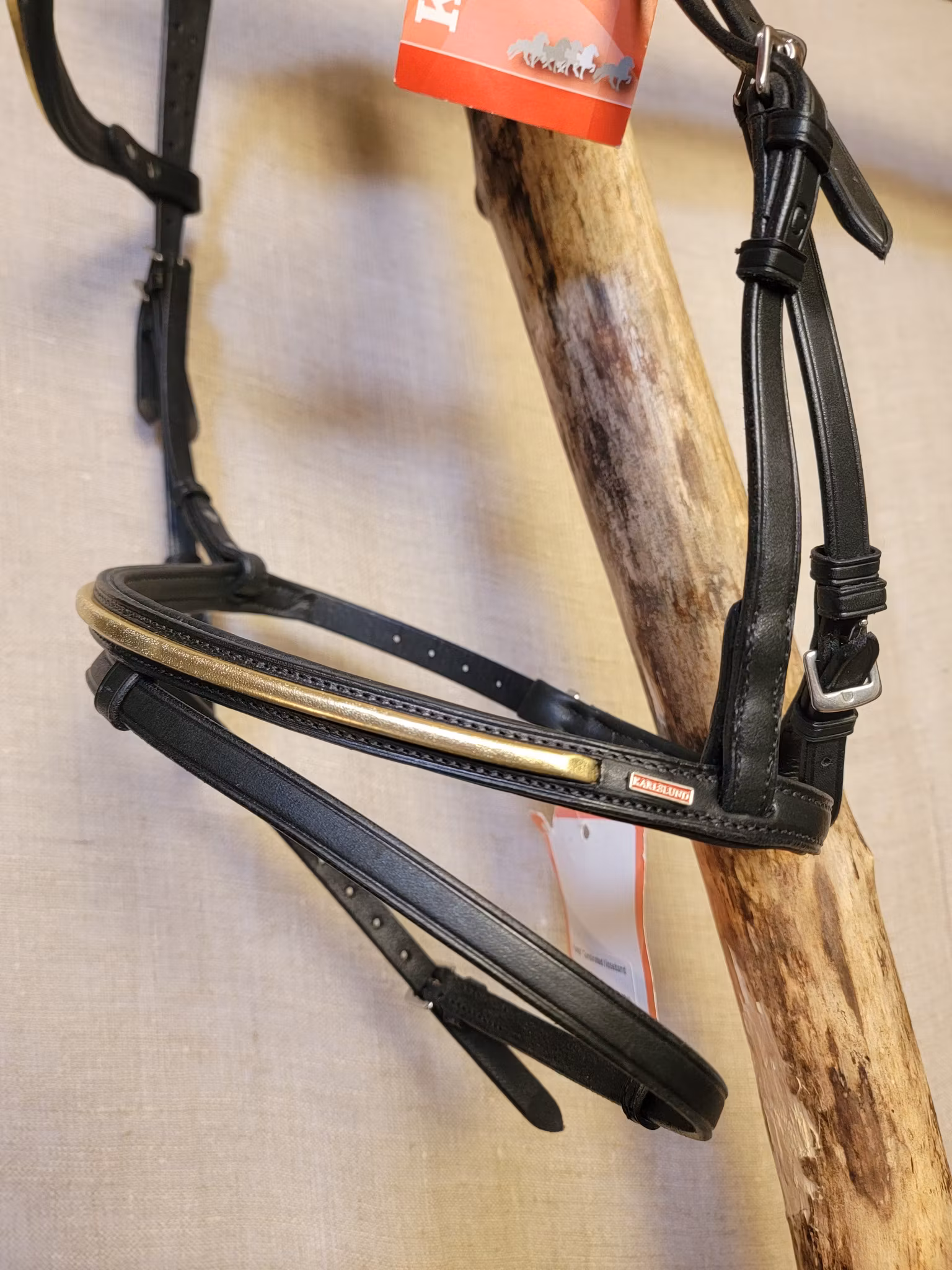Träns stl cob i svart med gulddekor och silverspännen från Karlslund. Nytt 600 kr I lager. Lägg i korgen