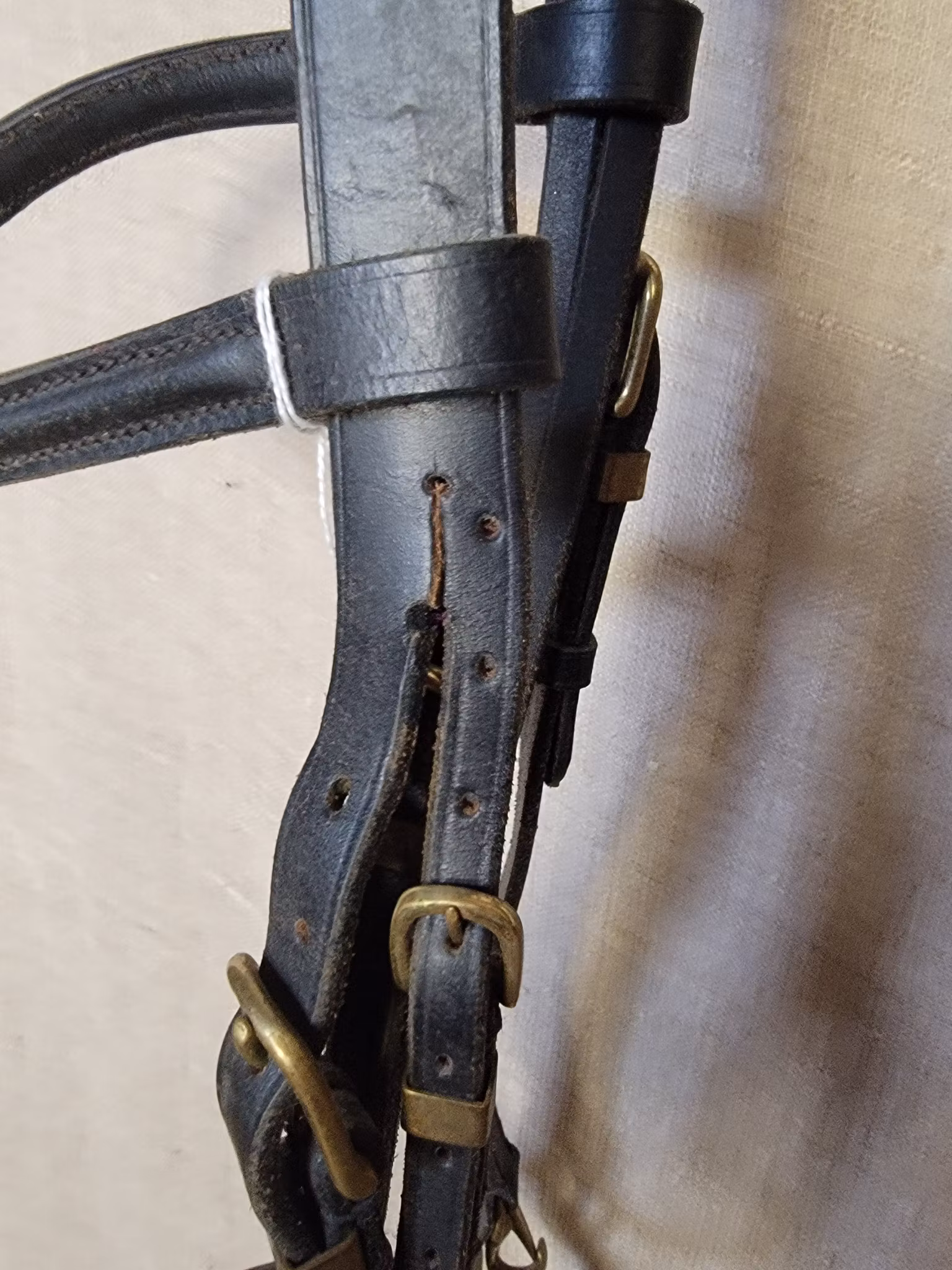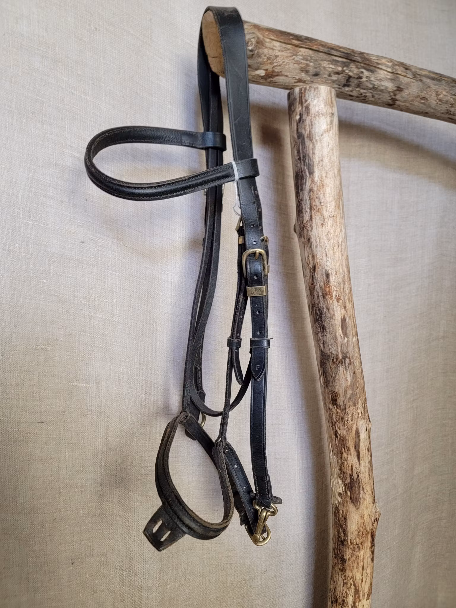 Träns stl full i svart med mässingspännen 90 kr I lager. Lägg i korgen Produktbeskrivning En del slitage och smuts finns, lite uppskuren för kunna minska ner storlek men övrigt ok skick.