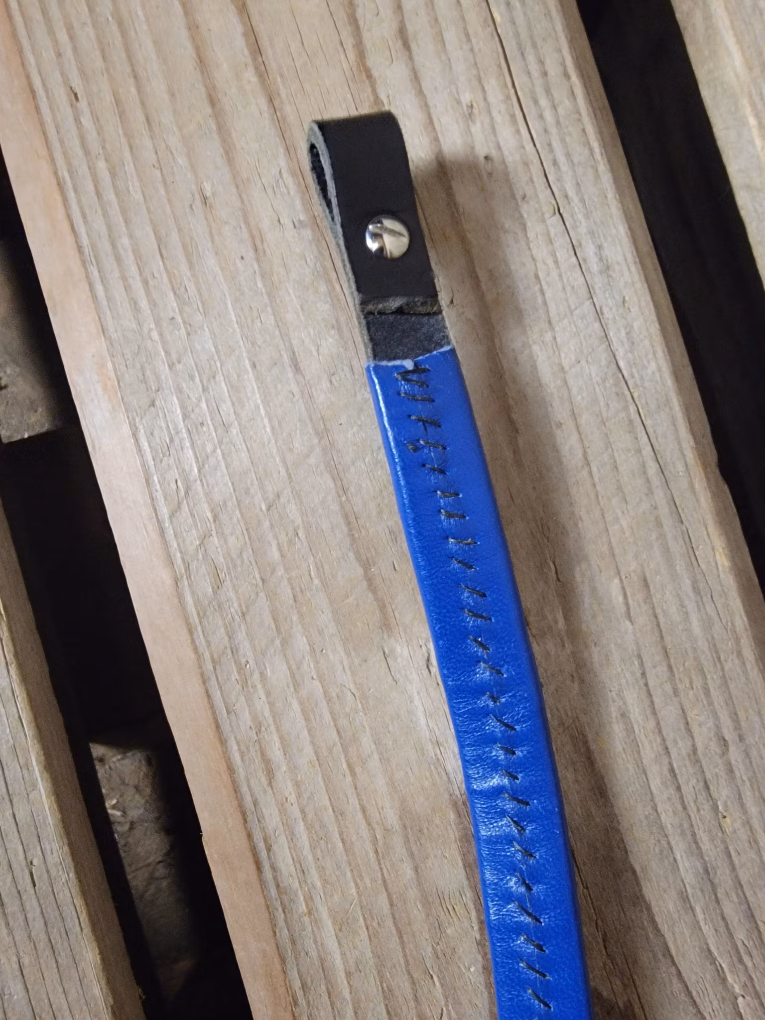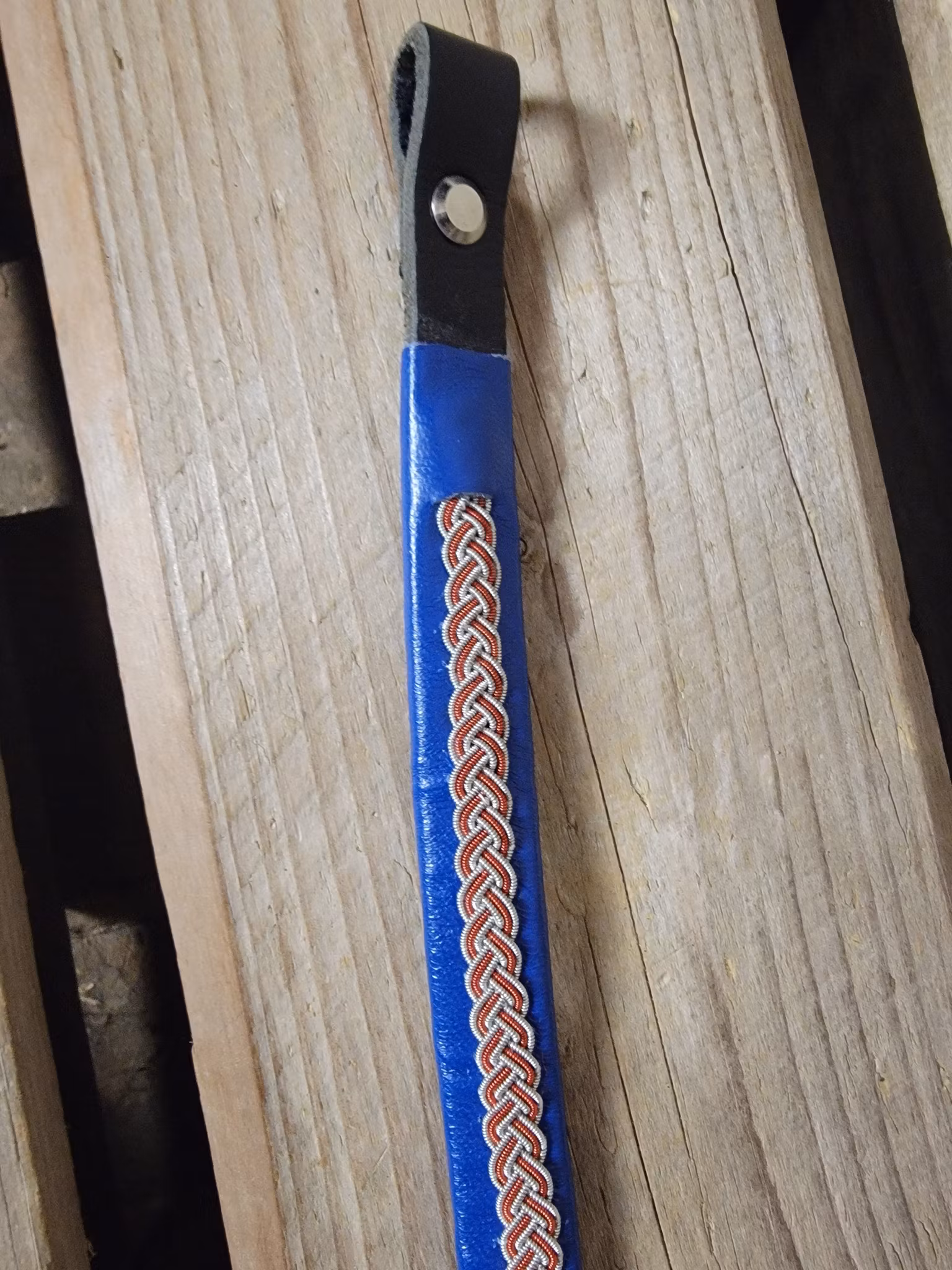Pannband stl cob i svart med handgjort vackert tennbroderi i rött och silver på blått läder 290 kr I lager. Lägg i korgen Produktbeskrivning Nyskick