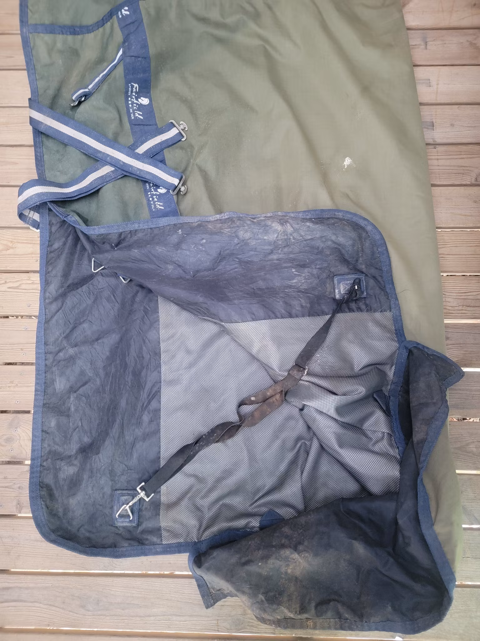 Regntäcke 135 cm från Fairfeild 250 kr I lager. Lägg i korgen Produktbeskrivning En del smuts finns och lite solblekt men övrigt ok skick.