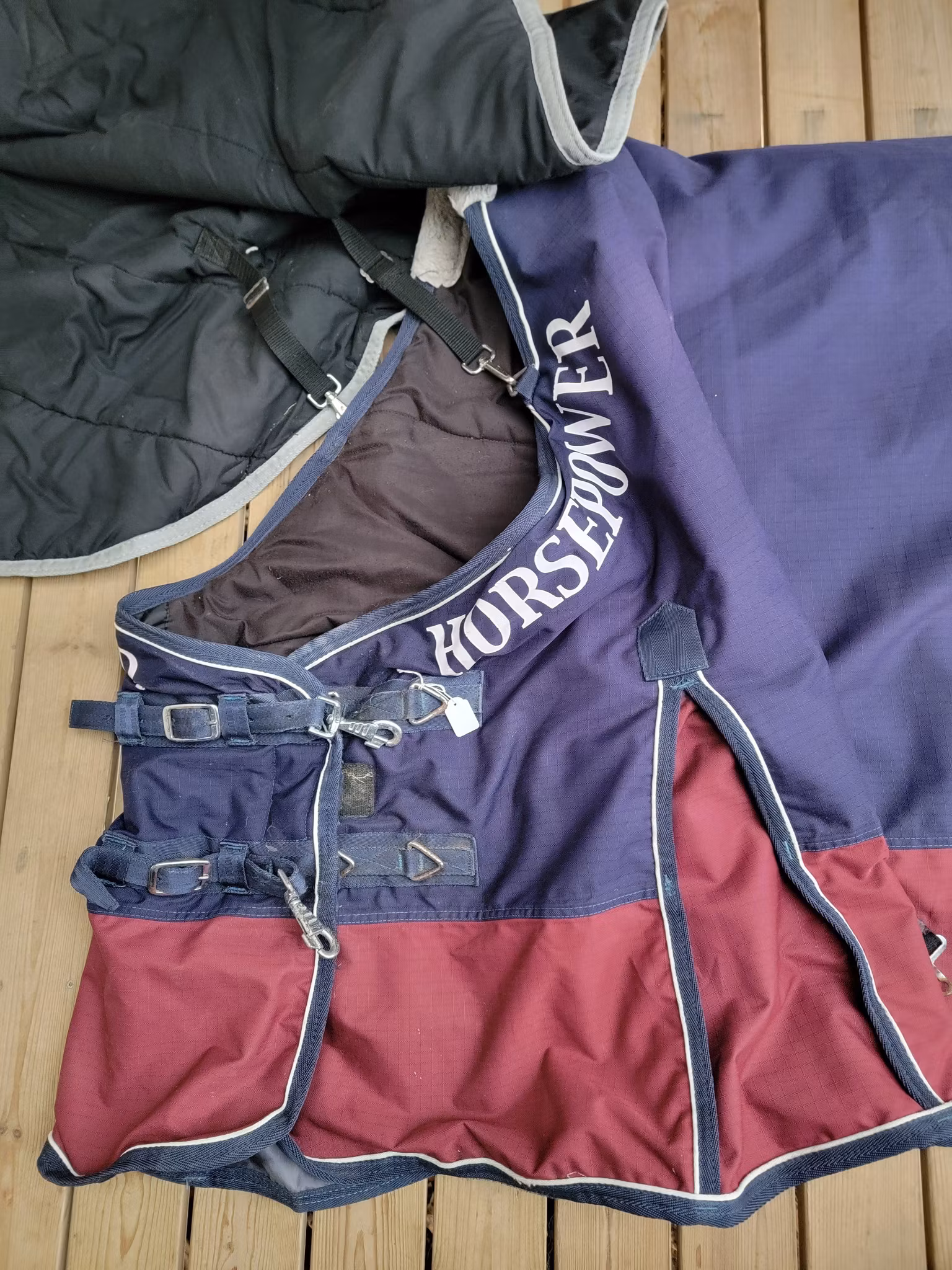 Vintertäcke ca 400gr 165 cm från Horse Power med lös hals 380 kr I lager. Lägg i korgen Produktbeskrivning Lite smuts finns men övrigt fint skick.