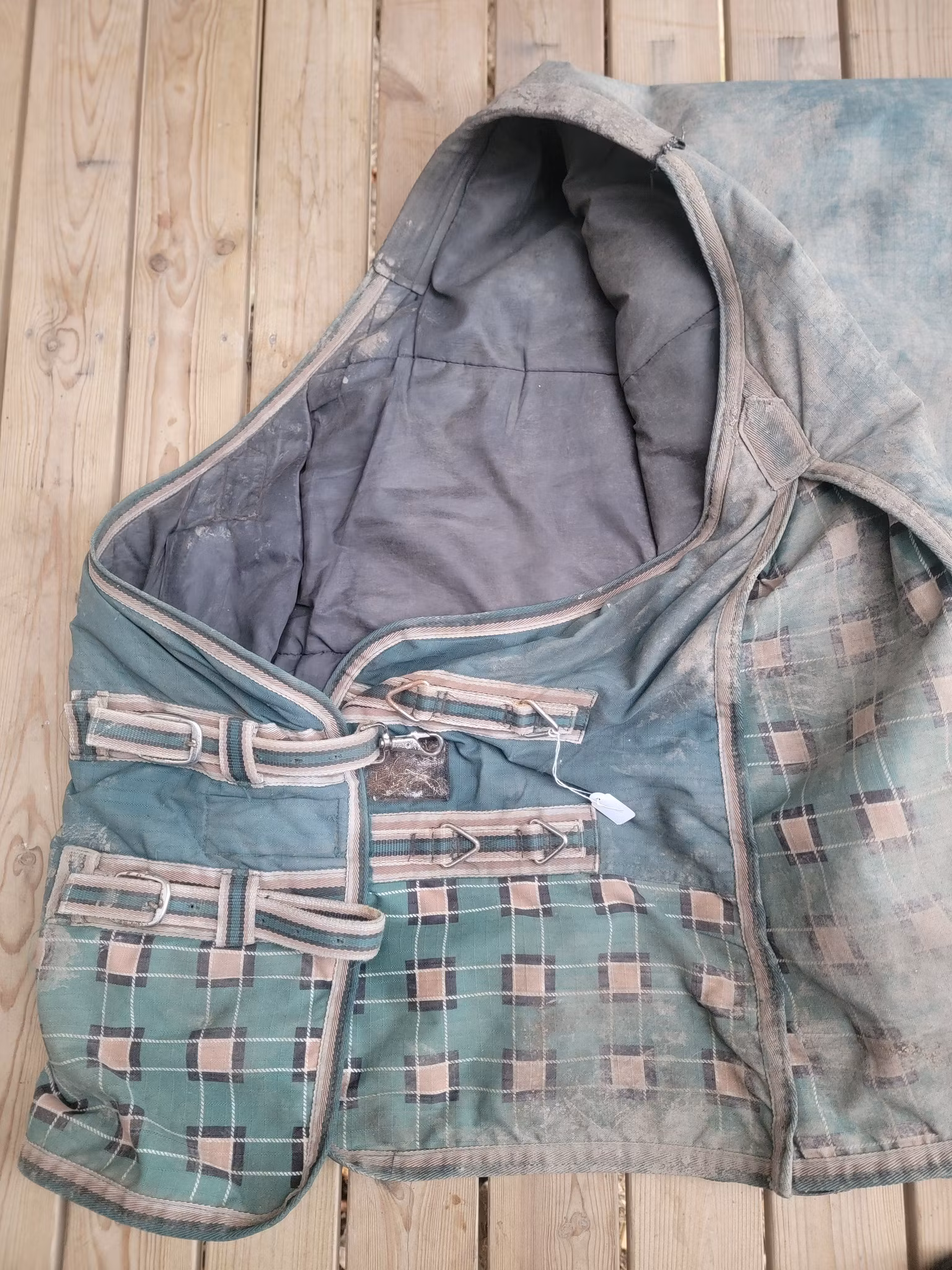 Vintertäcke ca 300 gr 125 cm 150 kr I lager. Lägg i korgen Produktbeskrivning Mycket smuts och lite rost på spännen + ett bogspänne saknas men annars ok skick.