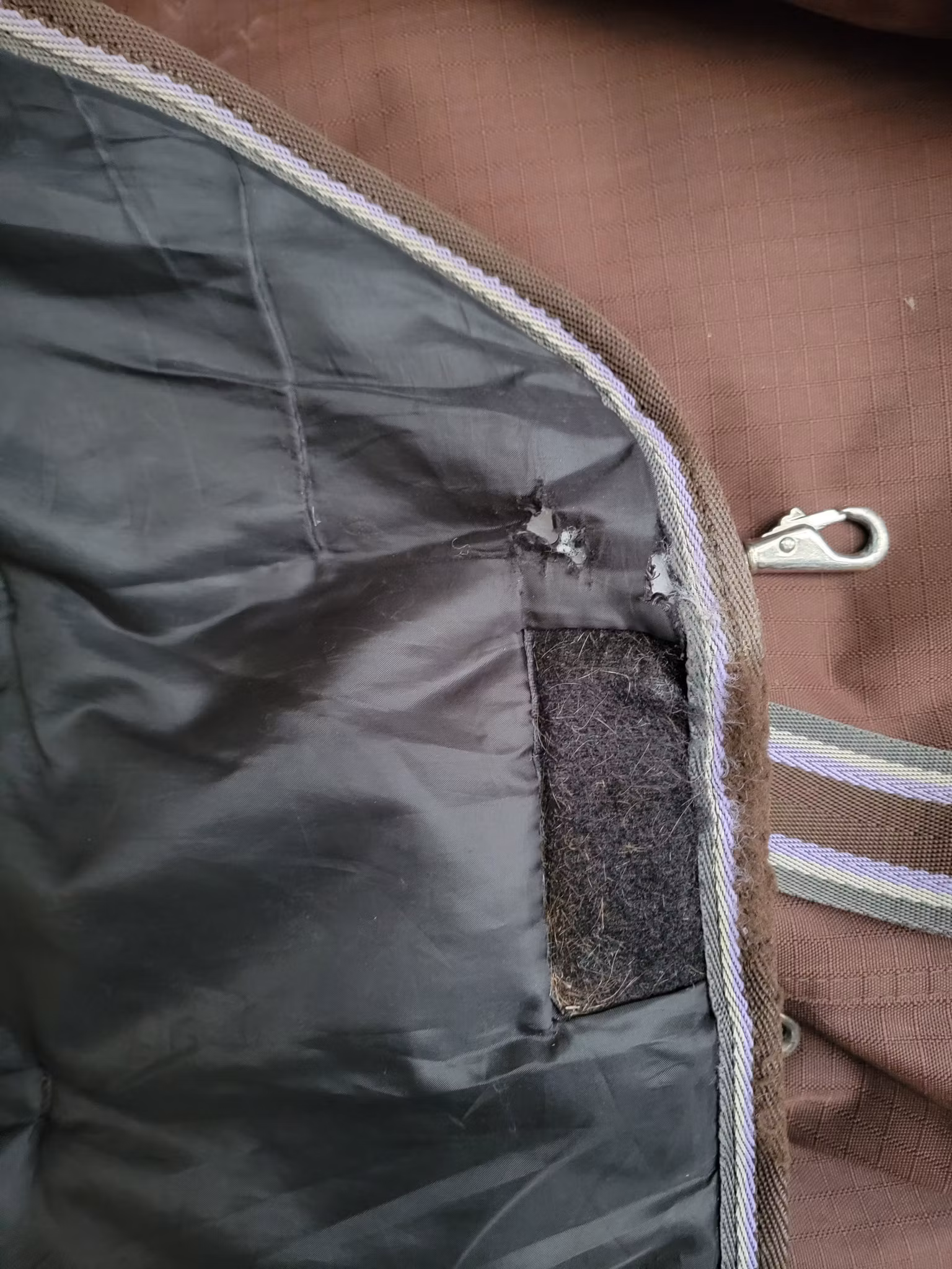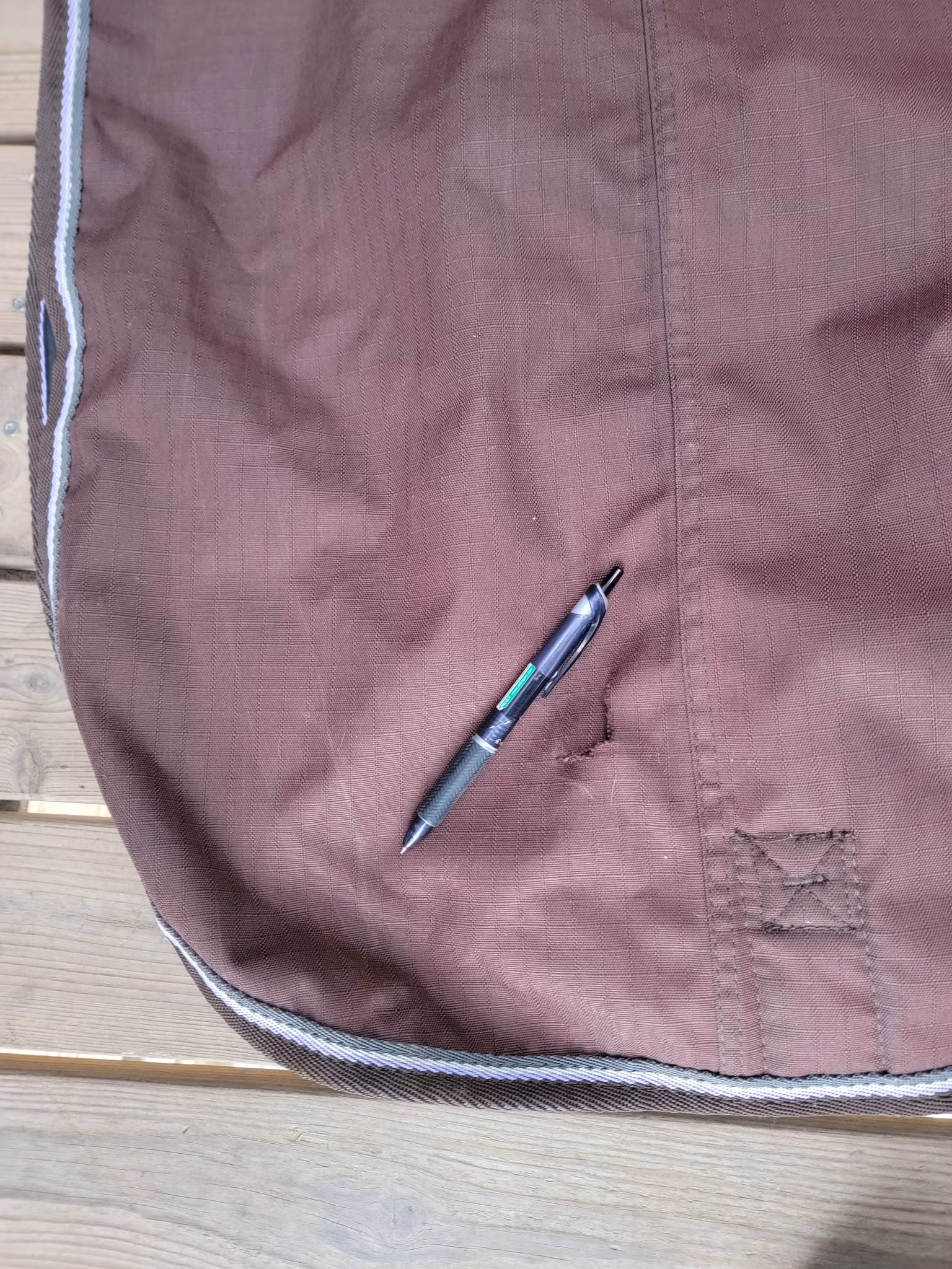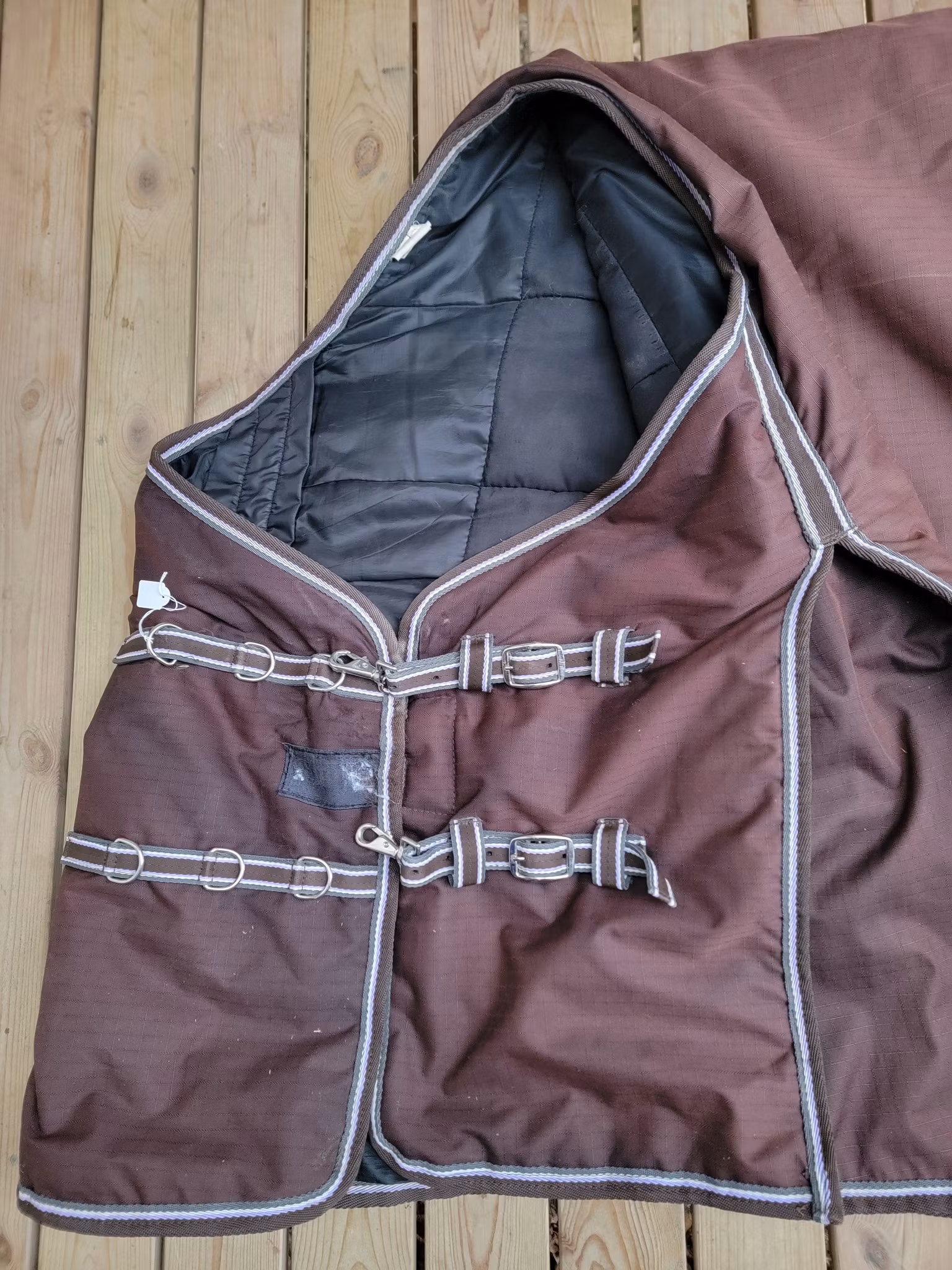 Vintertäcke ca 300 gr 165 cm från Riding House 100 kr I lager. Lägg i korgen Produktbeskrivning Några rejäla revor finns längst bak på täcket och några småhål på fodret i bogen men övrigt fint skick.