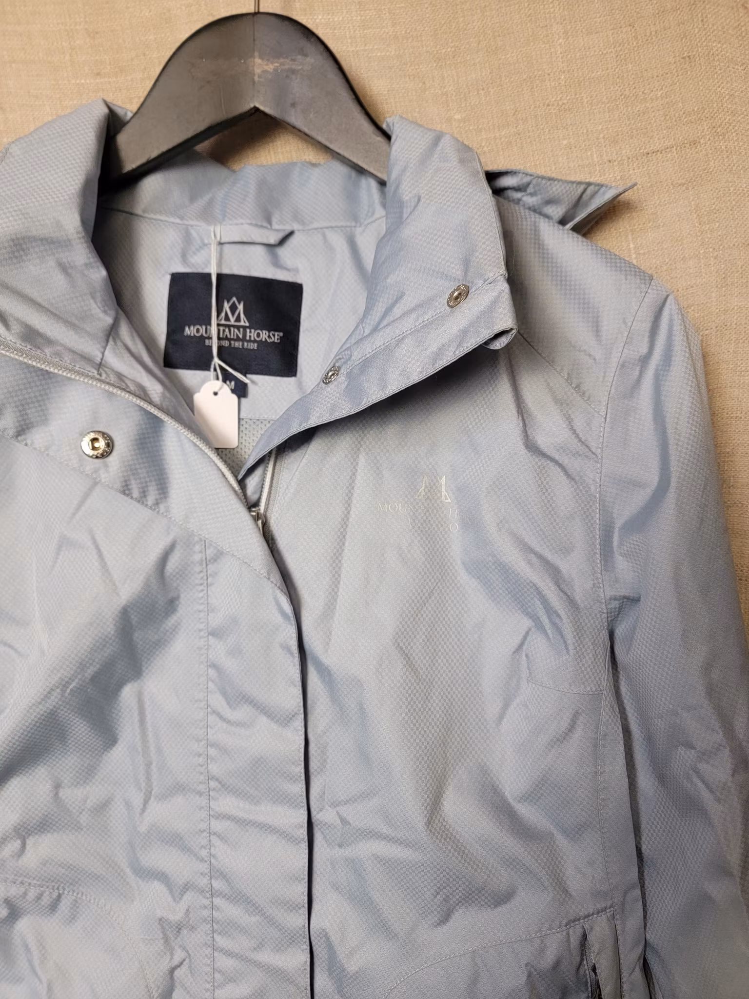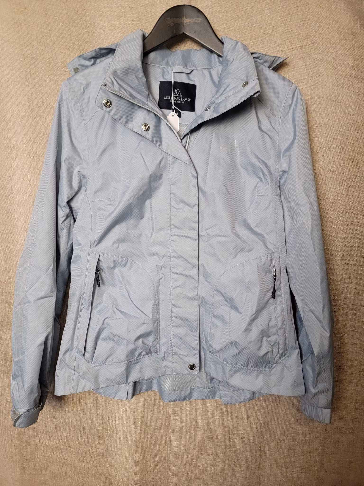 Regnjacka stl M i ljusblått från Mountain Horse 100 kr I lager. Lägg i korgen Produktbeskrivning Några småfläckar finns annars fint skick.