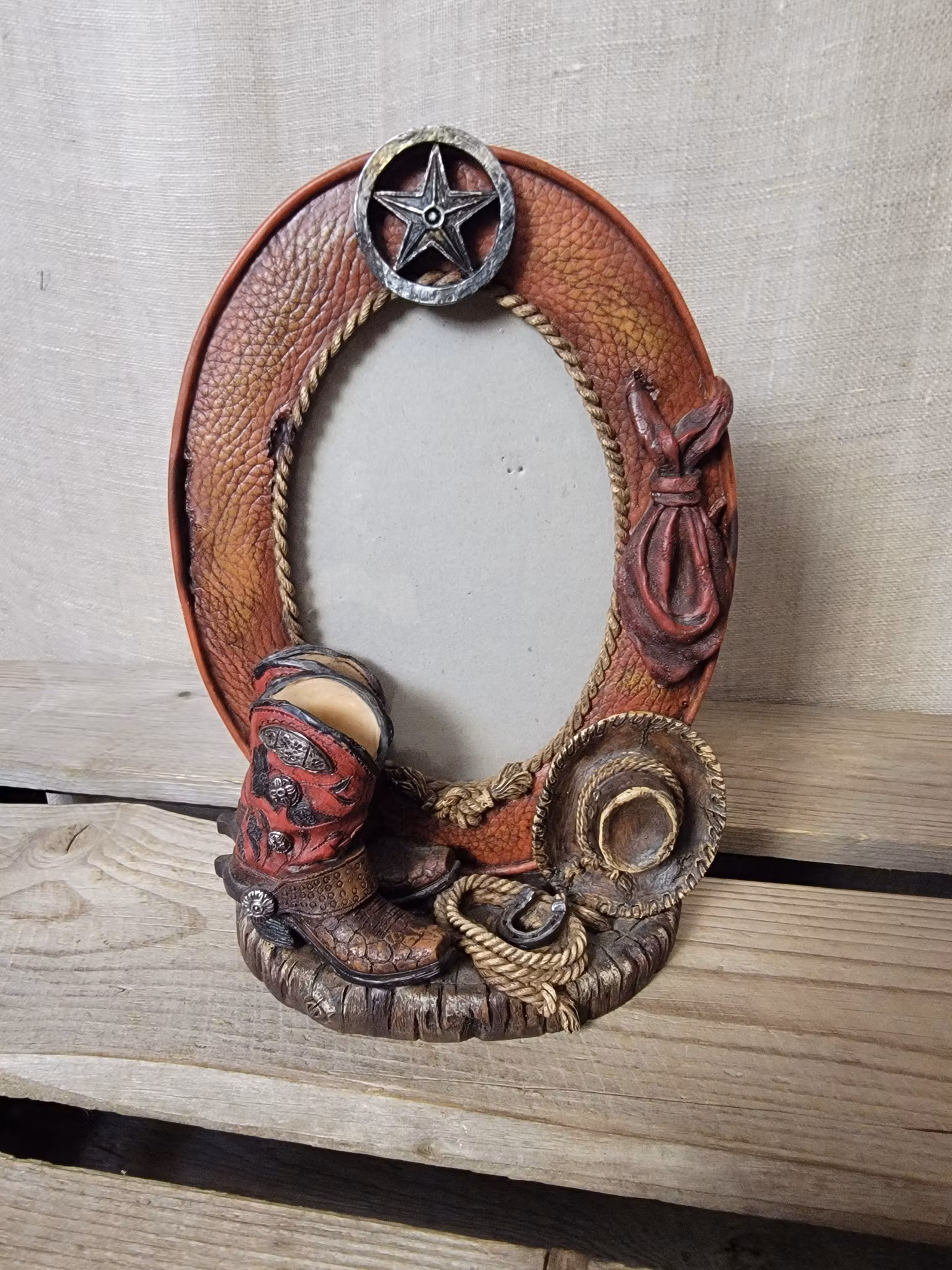 Stående ram i westernstil. 21 cm hög