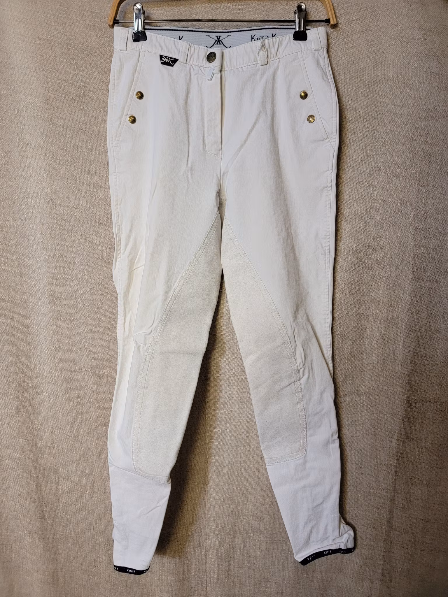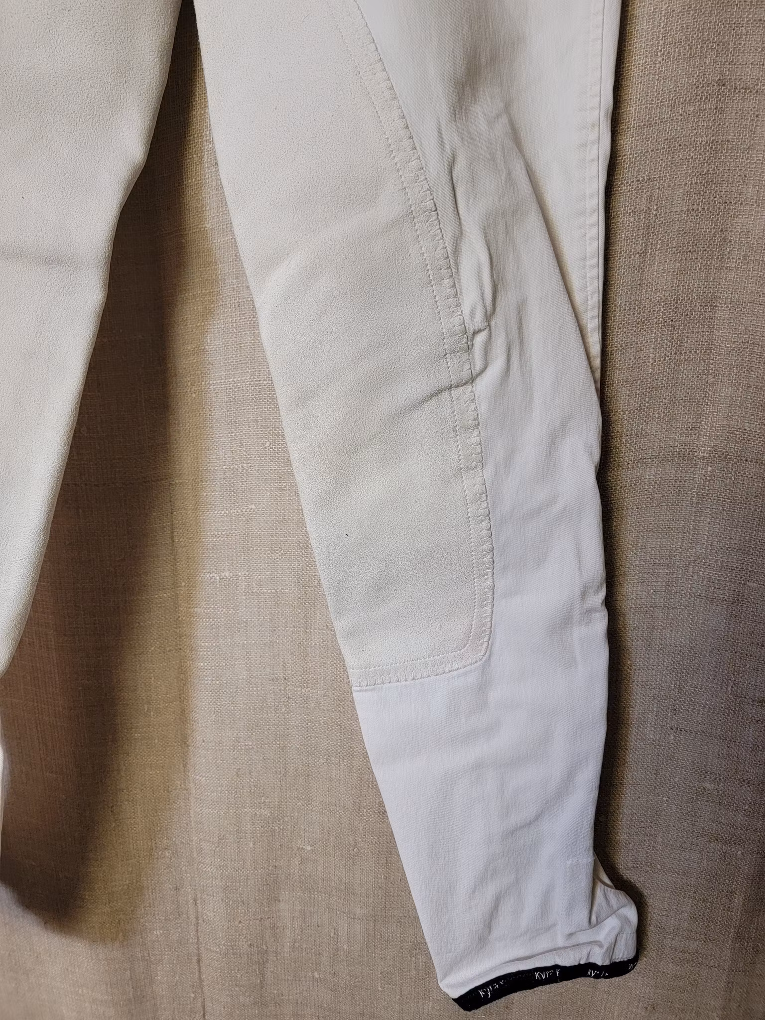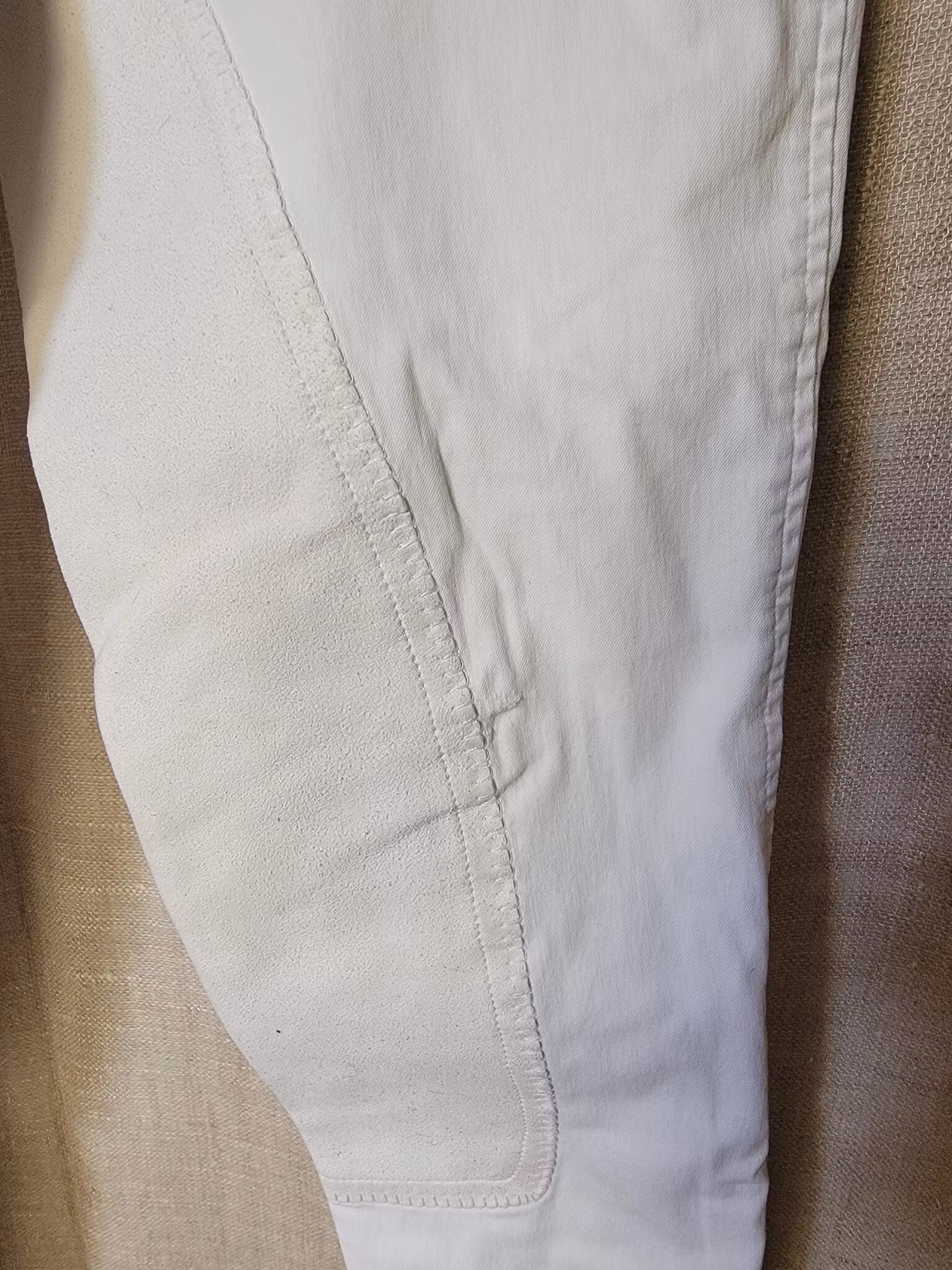 Ridbyxa helskodda med mocka stl 36 i vitt från Kyra K 10 kr I lager. Lägg i korgen Produktbeskrivning Lite missfärgningar och en del slitage finns främst på knäna men övrigt ok skick.
