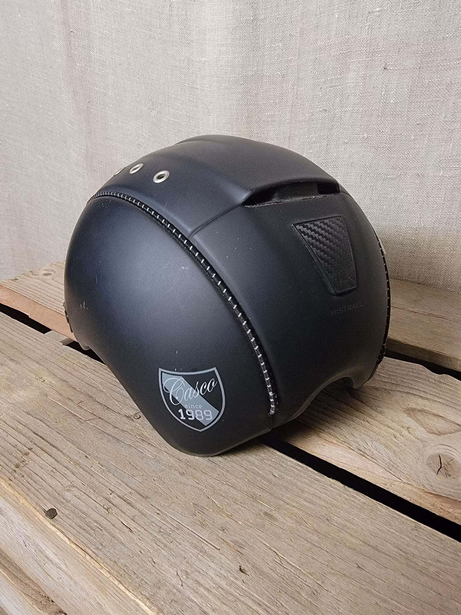 Hjälm stl 57-58 i svart från Casco 300 kr I lager. Lägg i korgen Produktbeskrivning Lite märken finns på insidan kant men övrigt ok skick .