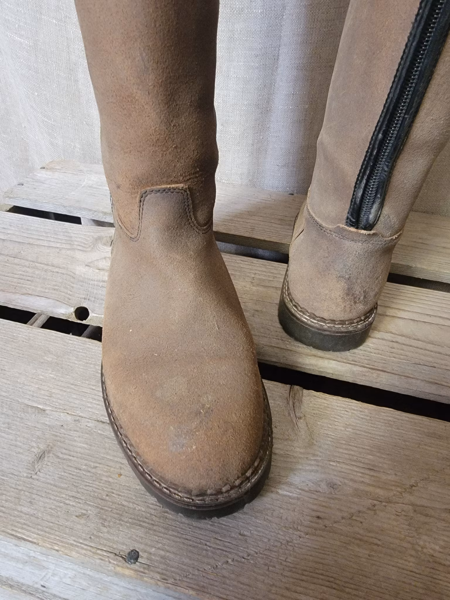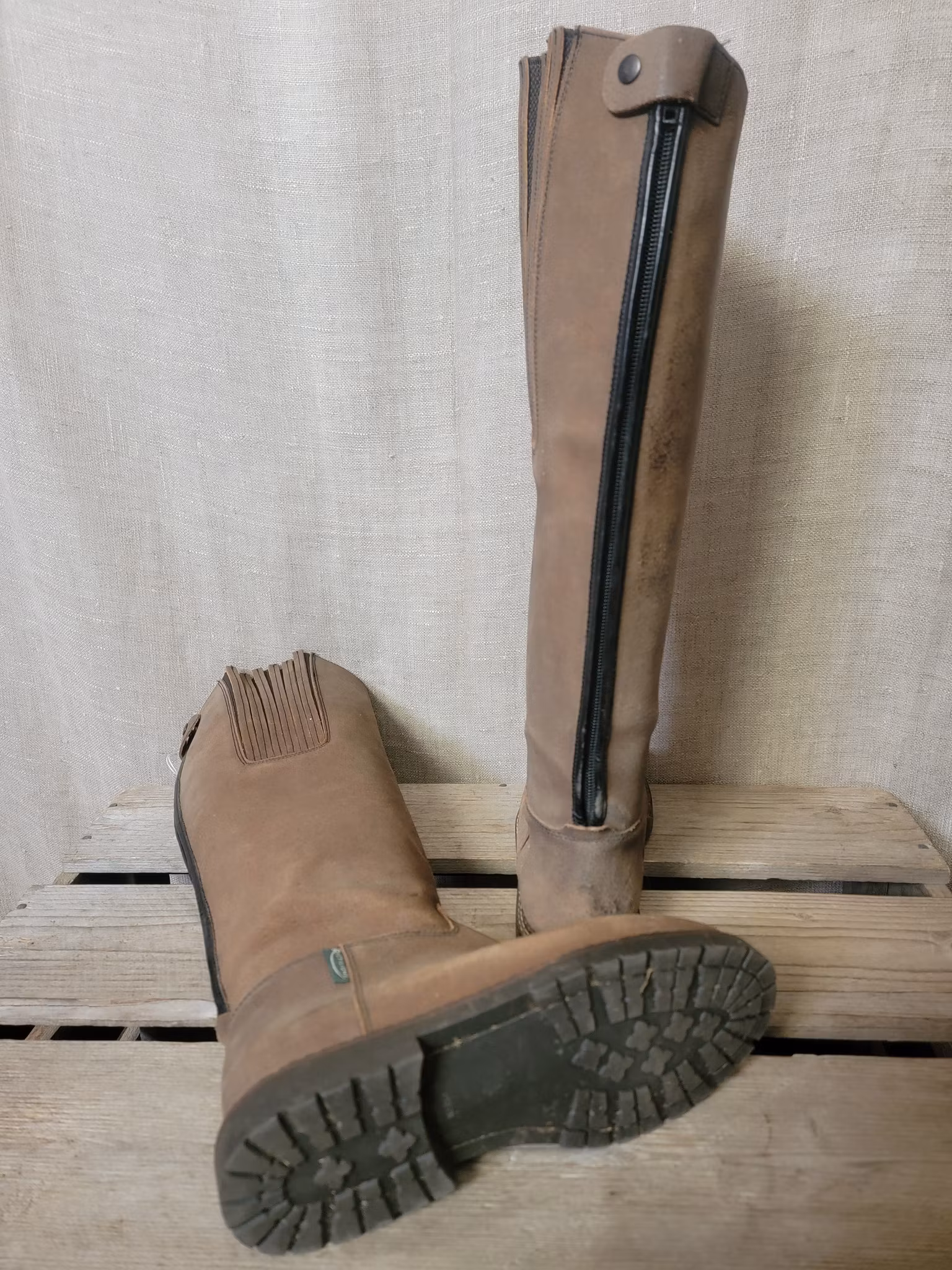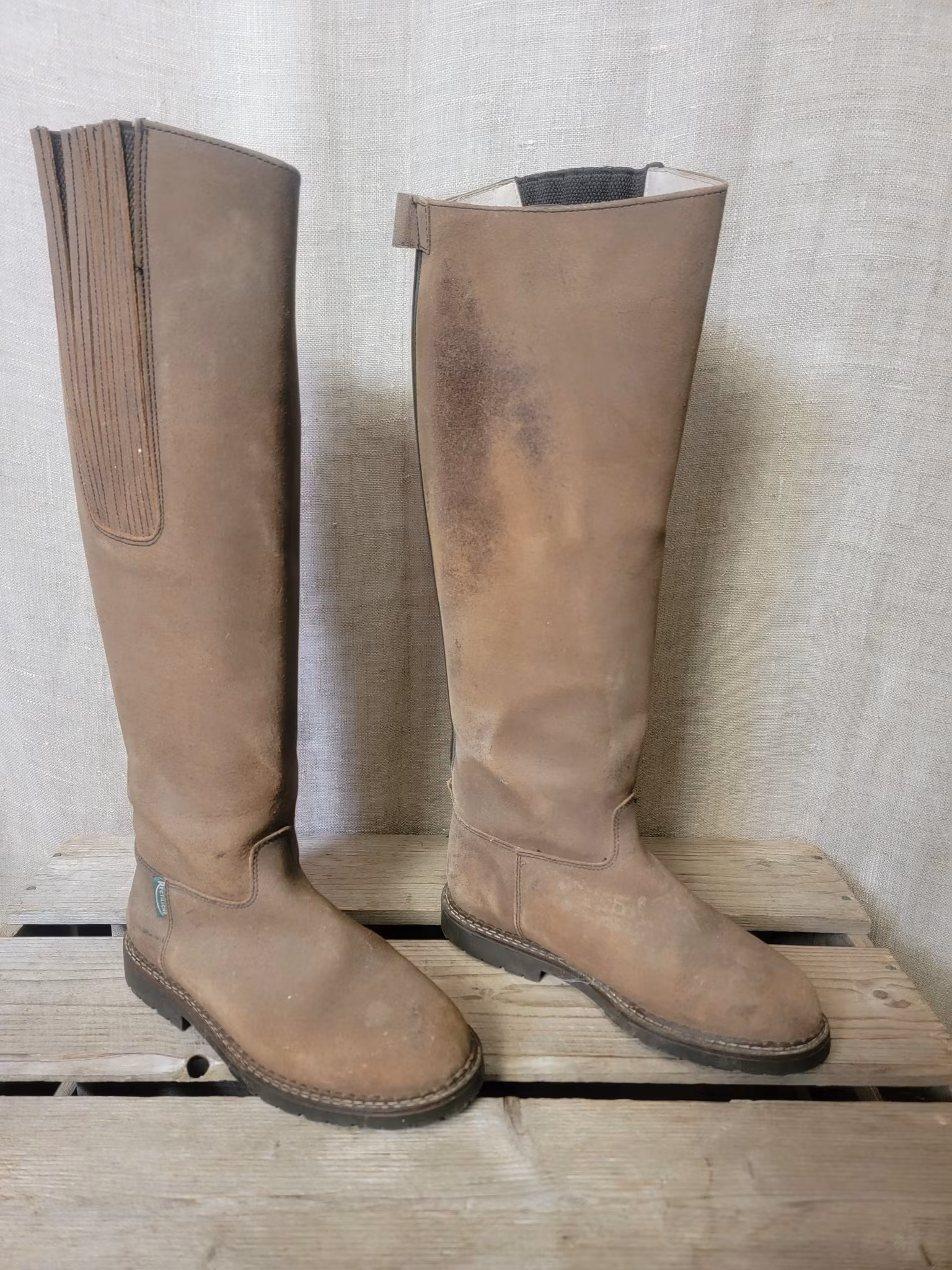 Ridstövlar stl 37 från Rectline, 42 cm höga baktill och 33 cm vadomkrets 160 kr I lager. Lägg i korgen Produktbeskrivning Lite slitage och fläckar finns men övrigt ok skick.