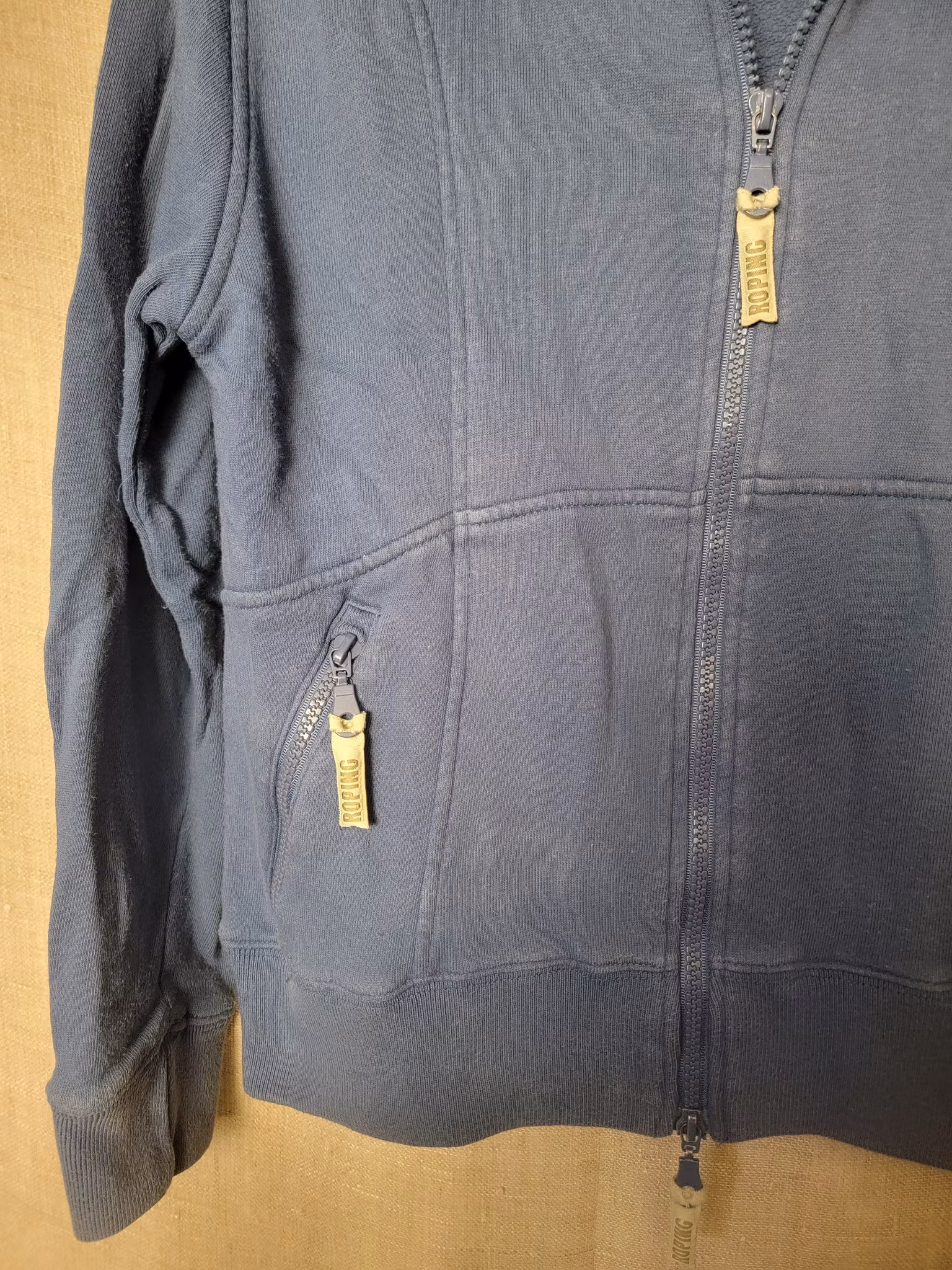 Collegetröja med dragkedja stl 170 cl i blått från Roping 10 kr I lager. Lägg i korgen Produktbeskrivning Lite urtvättad och slitage finns men övrigt ok skick.