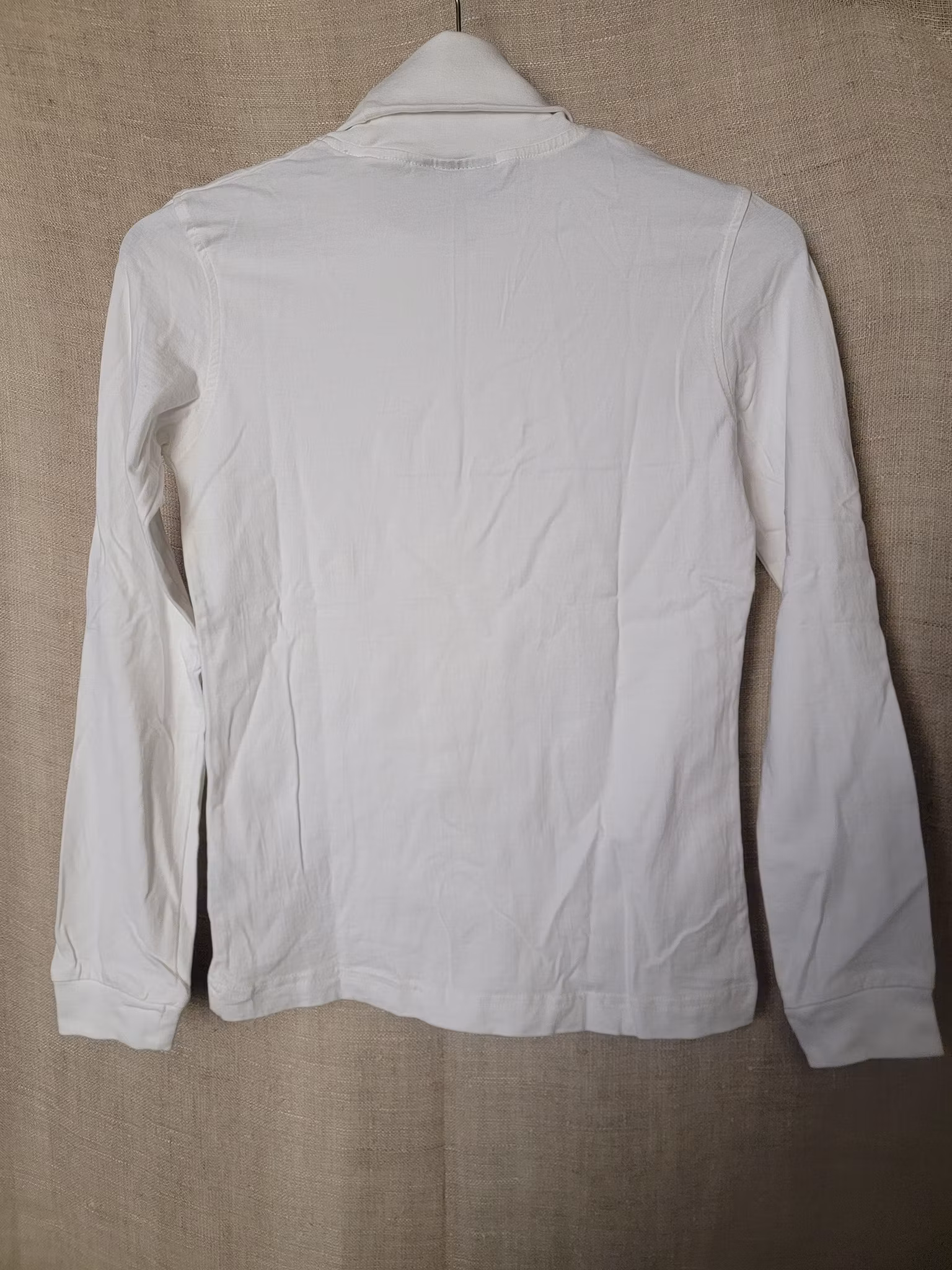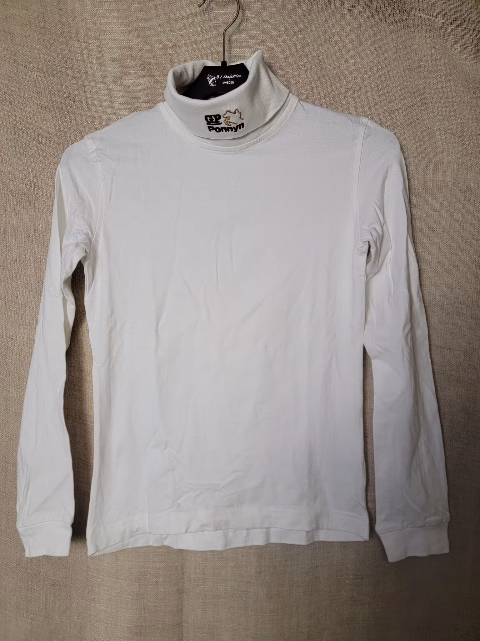 Långärmad t-shirt med hög hals stl S i vitt från South West 10 kr I lager. Lägg i korgen Produktbeskrivning Några pyttesmå fläckar finns men annars fint skick.